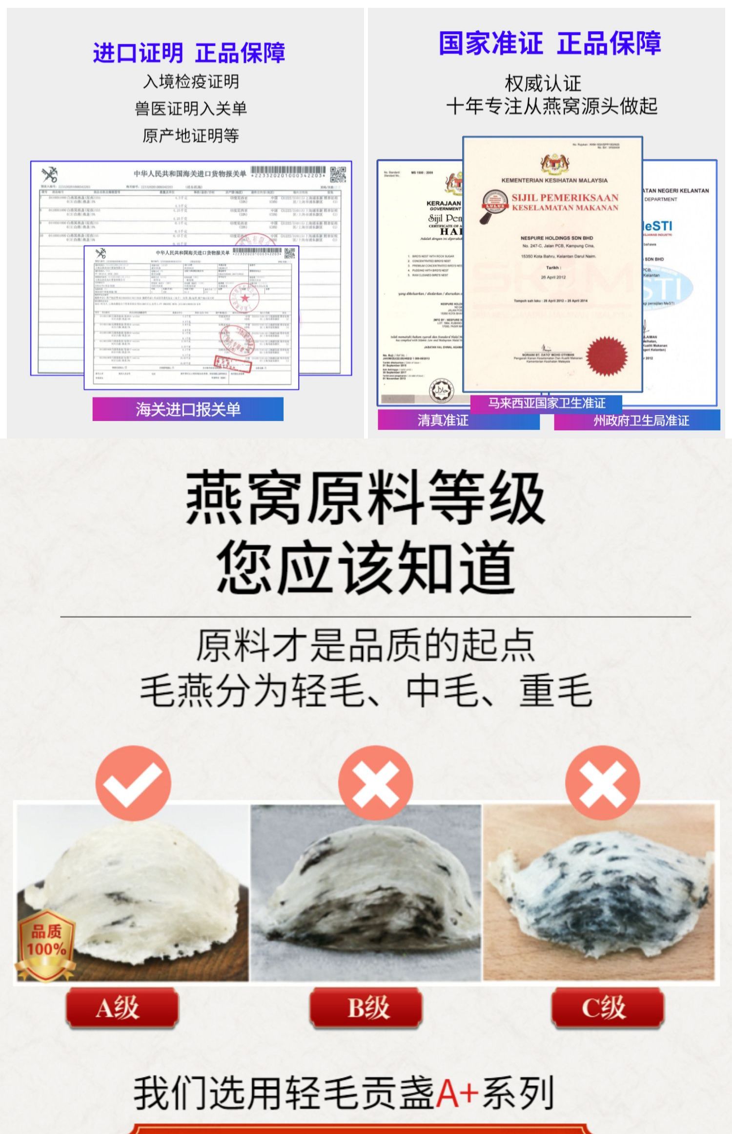 马来西亚三角盏干盏货孕妇滋补老人高端燕窝礼盒特级印尼正品装品
