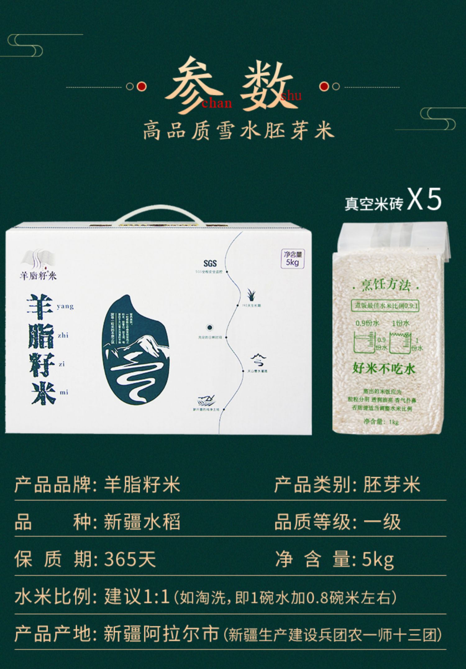 新疆羊脂籽米胚芽米5kg优质大米2022年新米粳米可搭配有机大米