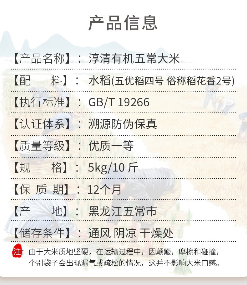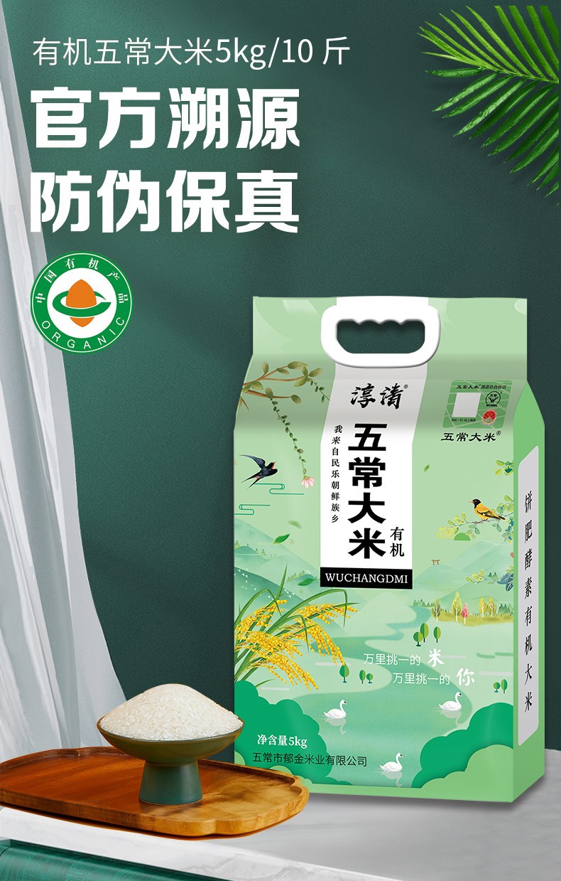 五常大米 官方溯源保真 淳清 有机五常稻花香 东北大米 5kg/10斤/十斤
