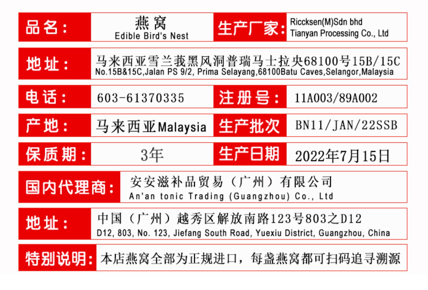 孕妇款【马来西亚9A级别燕窝】进口溯源 干盏正品旗舰店50g/100g