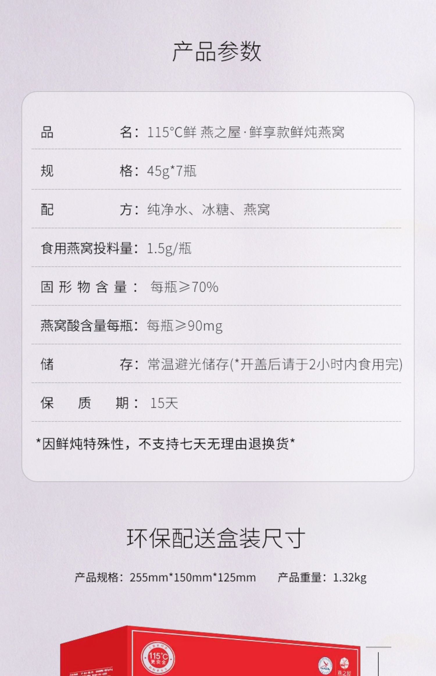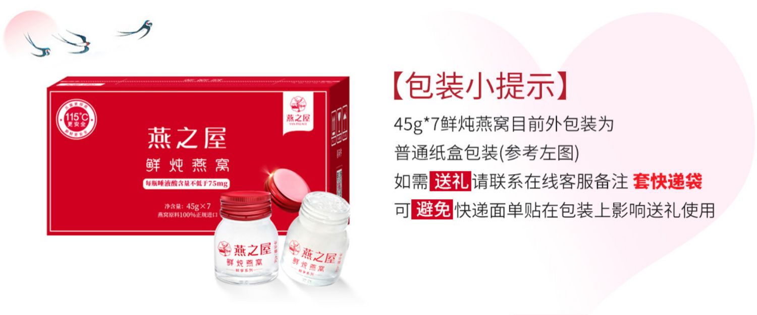 燕之屋鲜炖燕窝即食冰糖45g*7瓶孕妇补品官方旗舰店官网正品礼盒