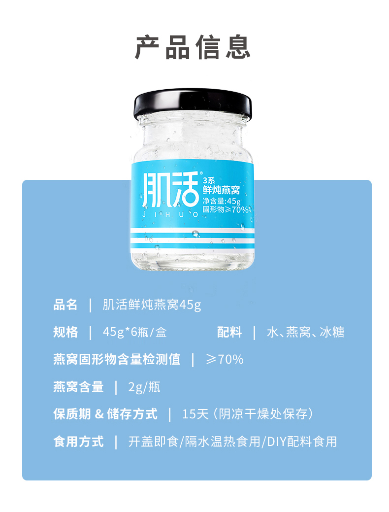 肌活鲜炖燕窝30瓶月套餐 3系45g冰糖/无糖即食印尼溯源孕妇滋补