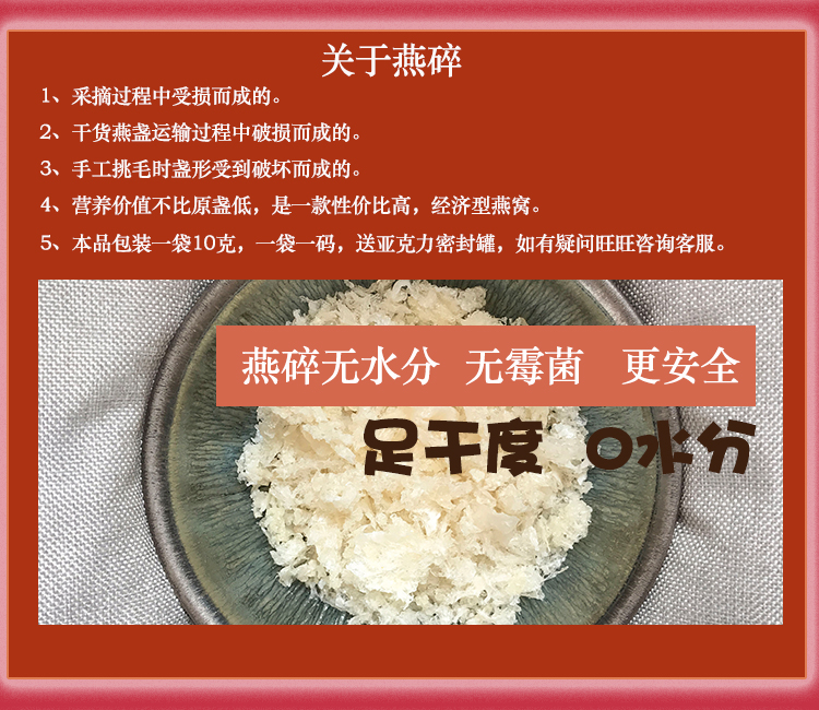 天然正品燕窝碎印尼燕窝干盏旗舰店官网方100g孕妇补品溯源码燕碎