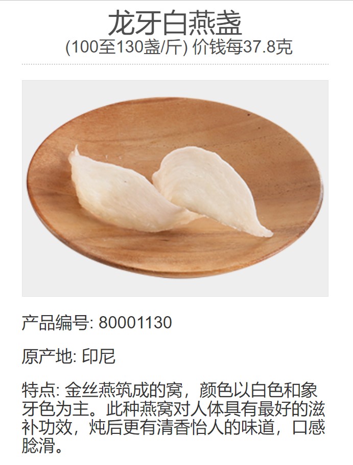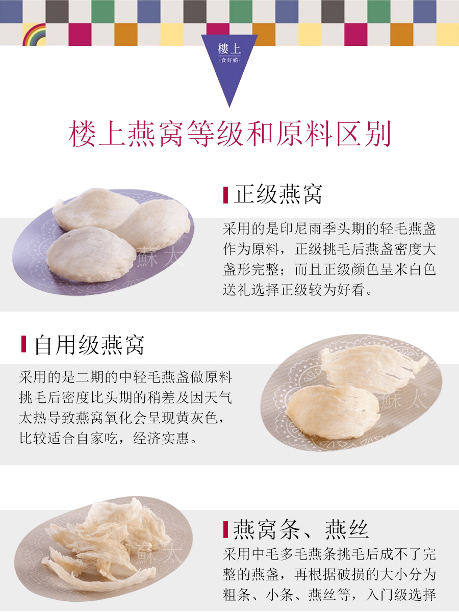 楼上燕窝 龙牙白燕 干盏干货孕妇孕期滋补正品二两75.6克泡发率高