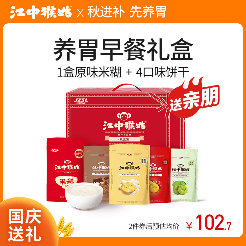 【送礼组合】江中猴姑[米稀+饼干]礼盒养胃早餐米糊猴头菇饼干