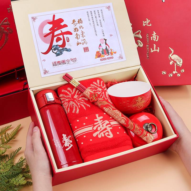 寿宴礼盒回礼老人过寿生日高端定制寿碗寿面寿茶毛巾祝寿礼品盒