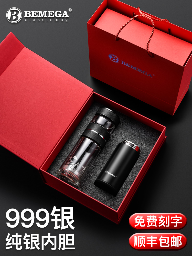 进口高端保温杯礼盒送人送礼佳品长辈老人男款高端水杯银杯子999
