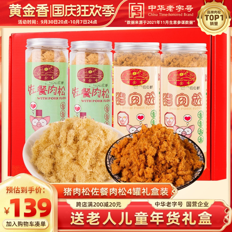 黄金香高端高端猪肉松 4罐猪肉松礼盒装 孕妇老人儿童零食