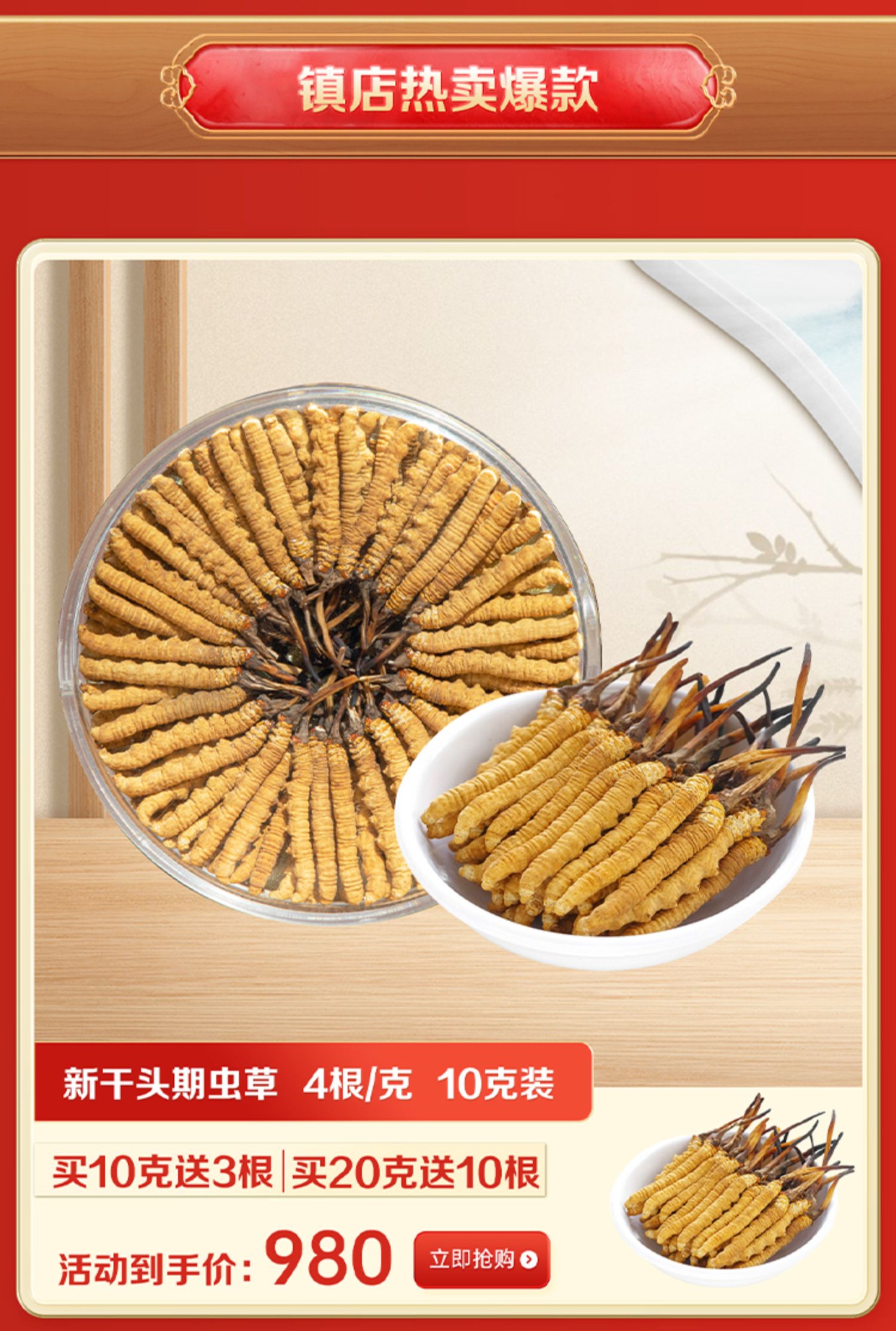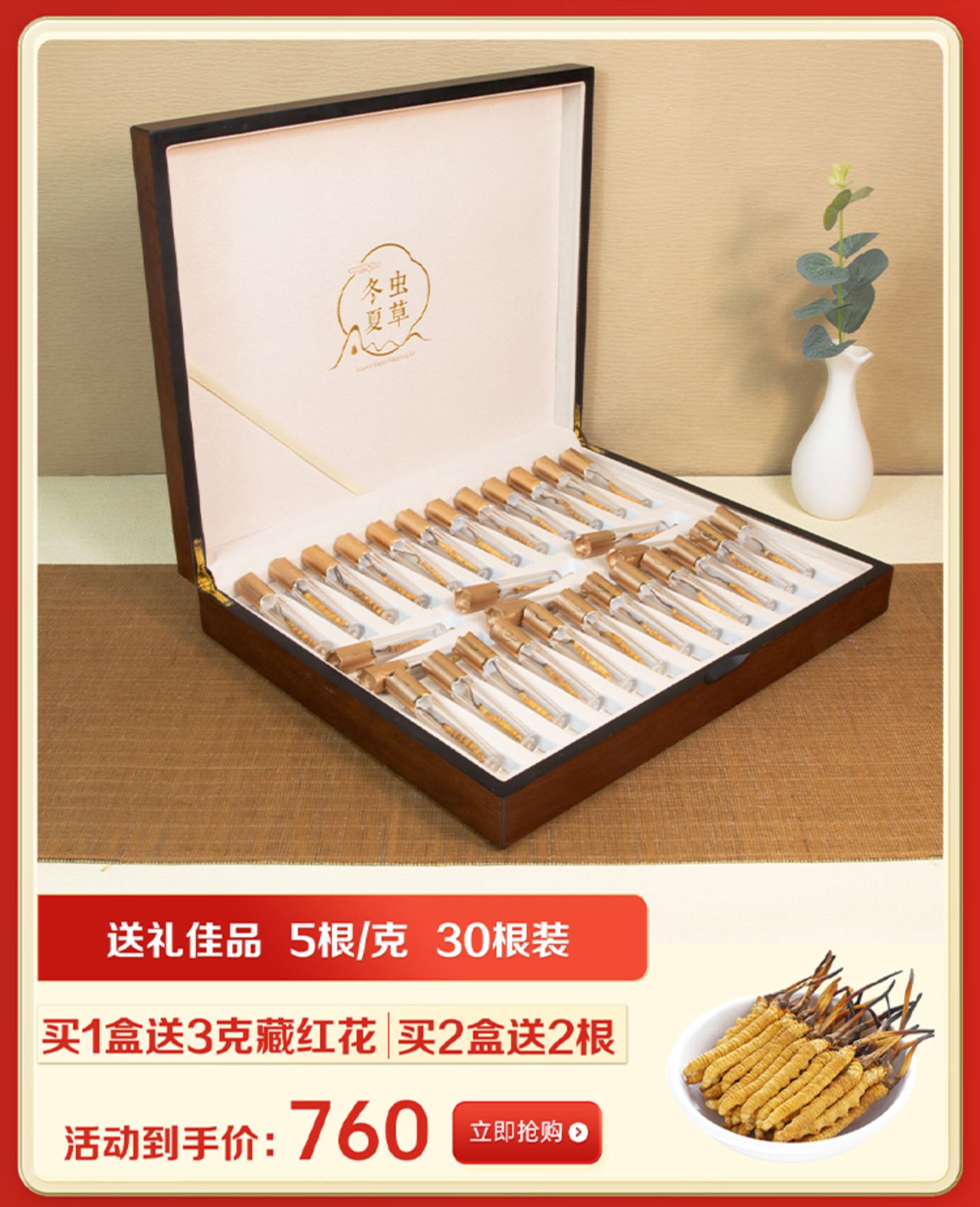 西藏那曲冬虫夏草旗舰店虫草正品干货30根10克礼盒装年货送礼佳品