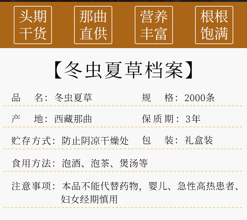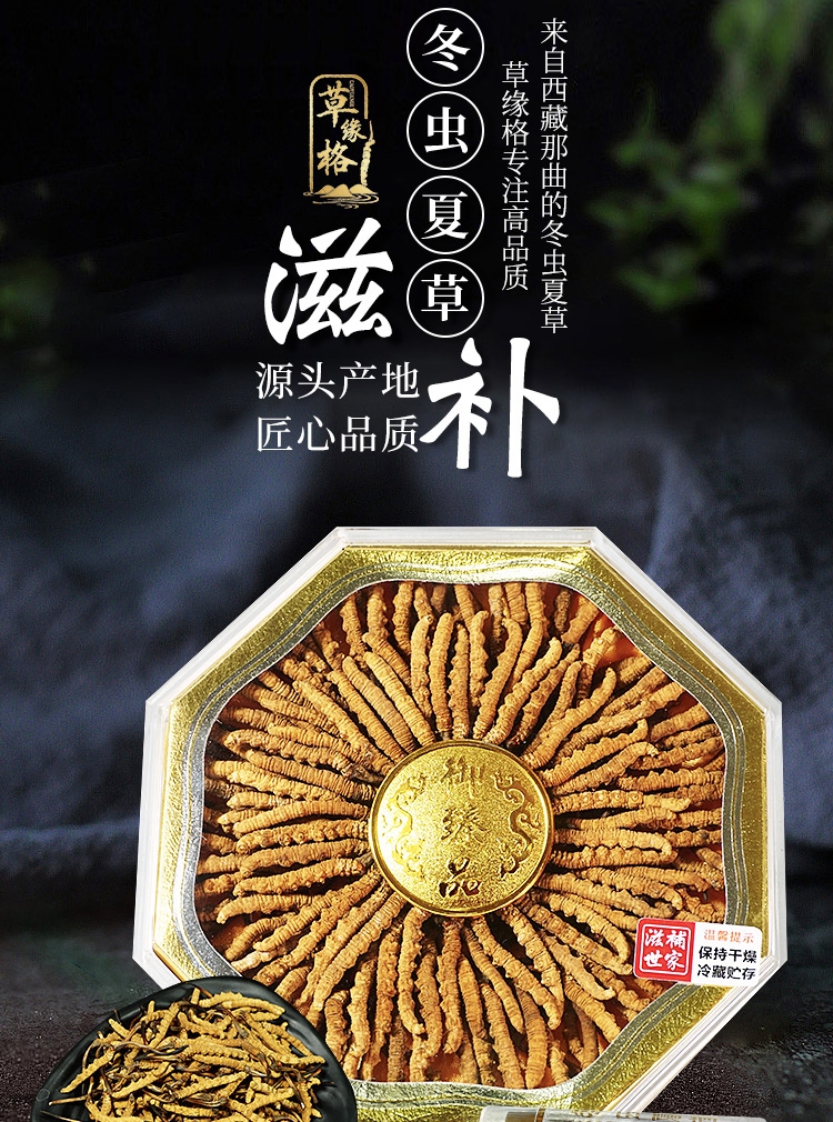 西藏那曲冬虫夏草旗舰店正品虫草头期干草干货新年春节送礼盒装