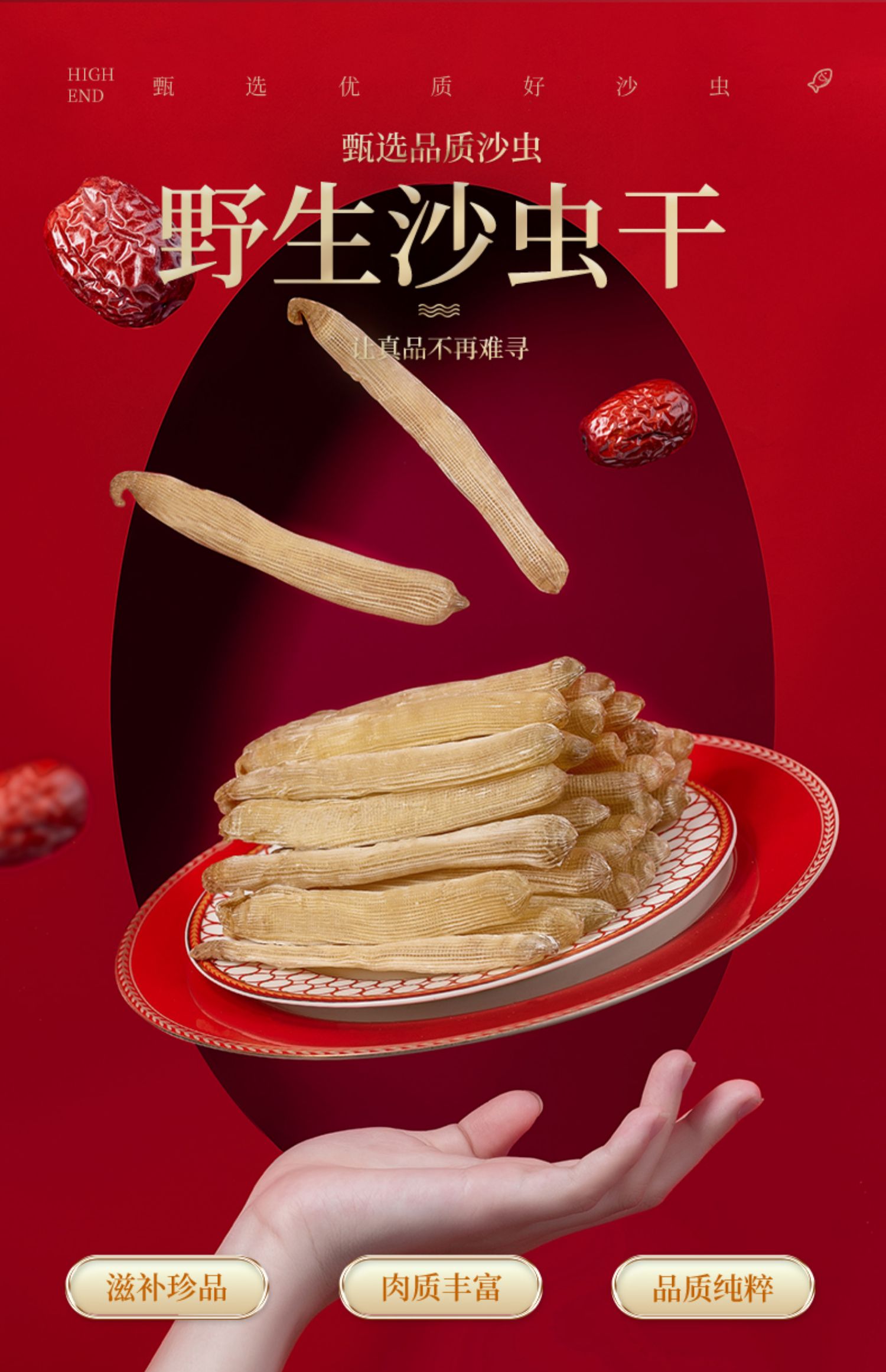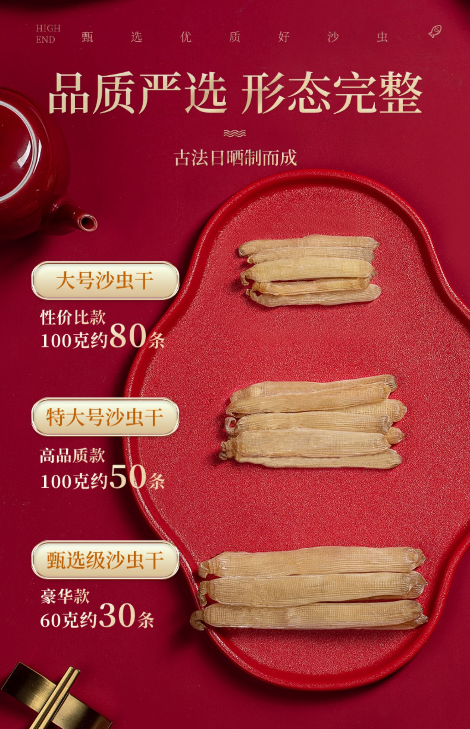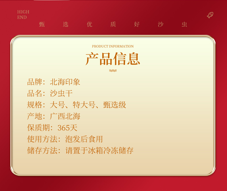 北海印象 北海特产大号沙虫干货100g干沙虫已去沙袋拍5份500g
