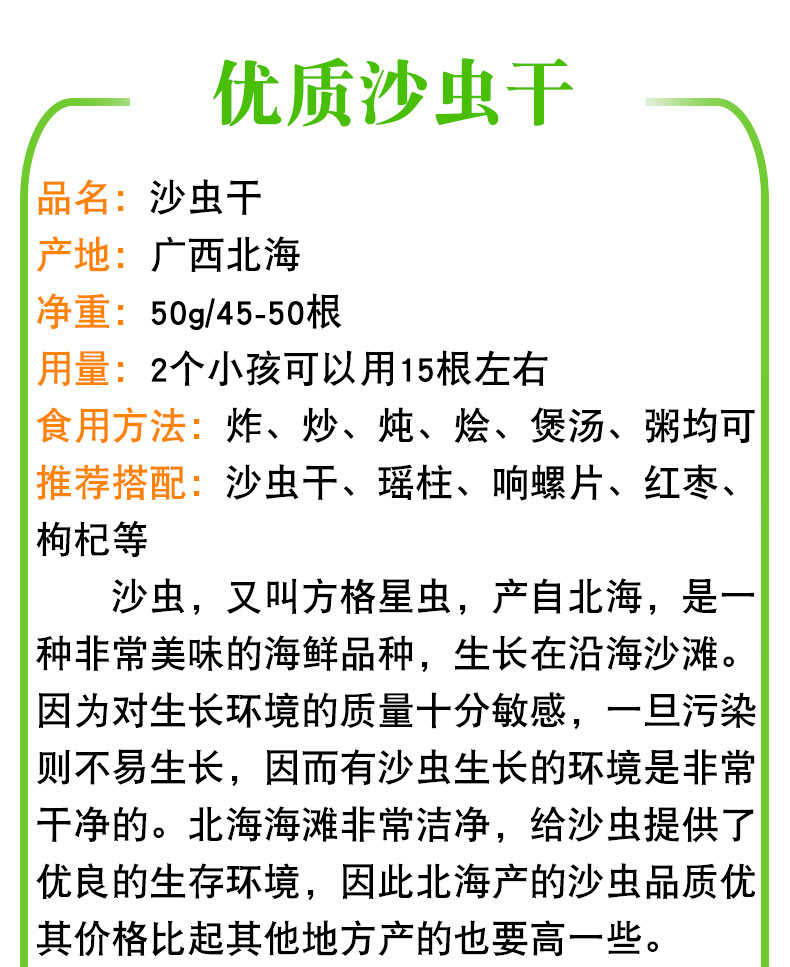 冠膳 精选优质沙虫干50g克 淡干海产品靓沙虫 小孩虚汗多尿床 常煲汤煲粥渔民自产自晒水产干货