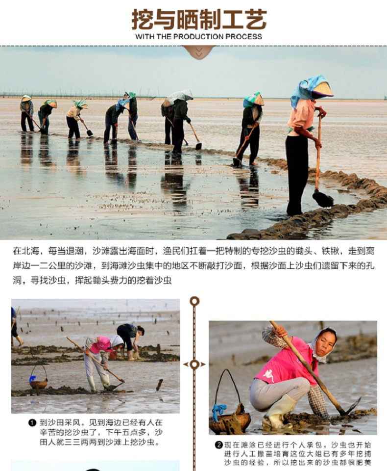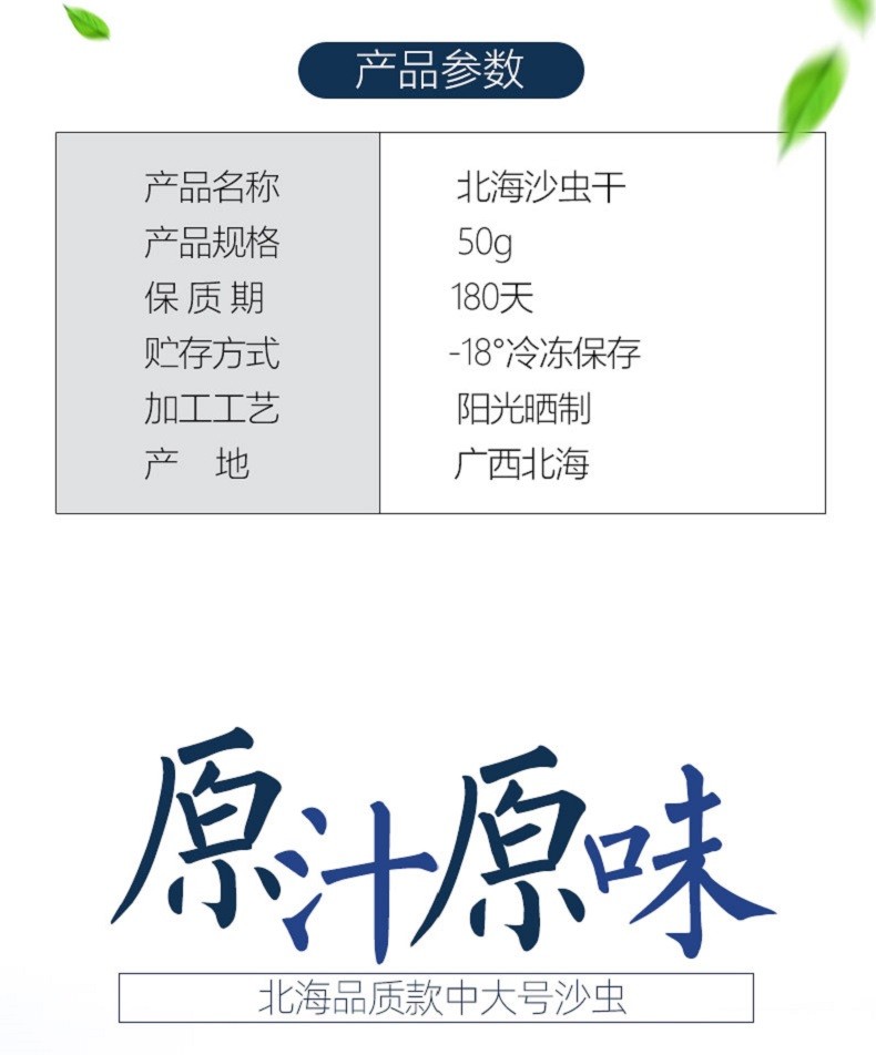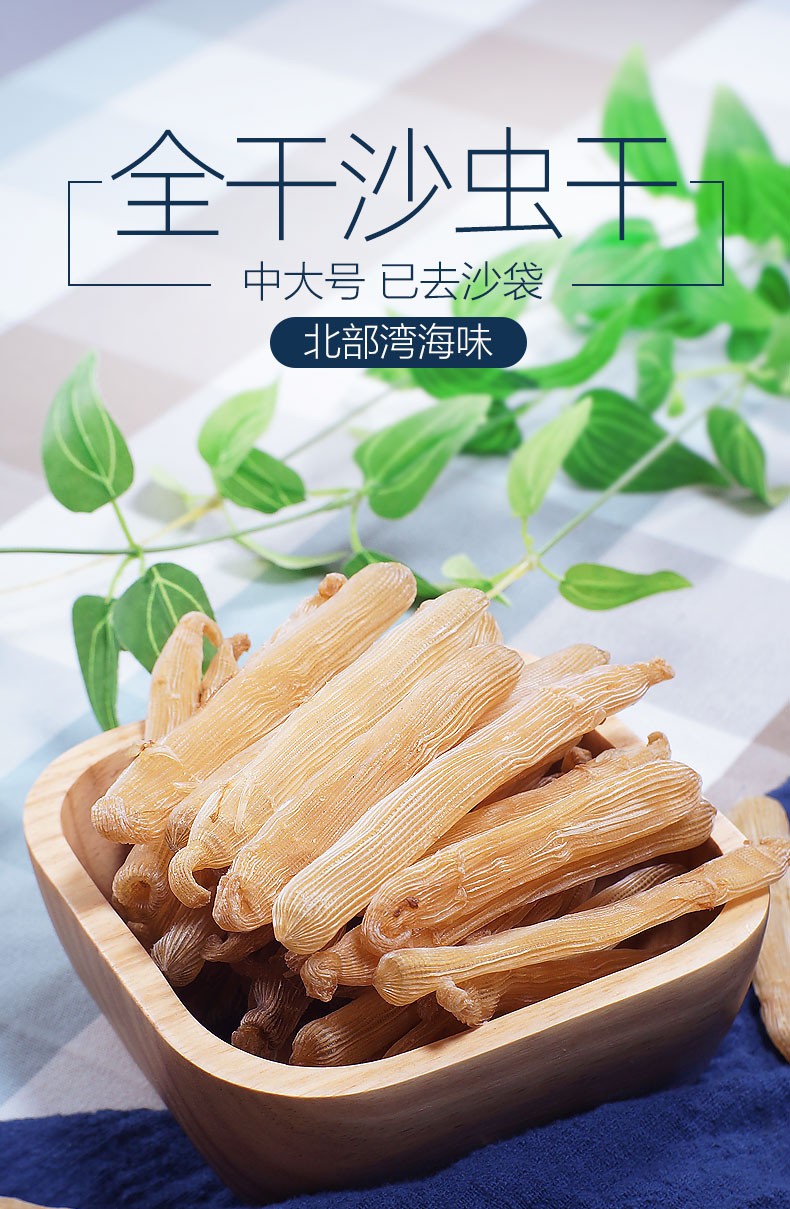 沙虫干沙肠子50g 已去沙袋淡干海虫子 海鲜海产干货海味北海特产 沙虫50g约75-85条