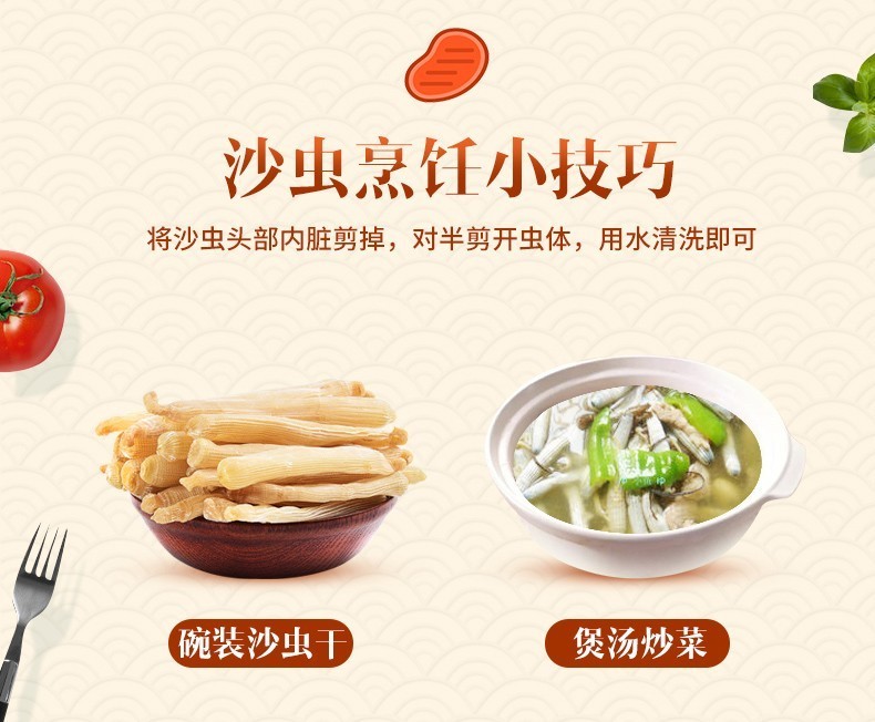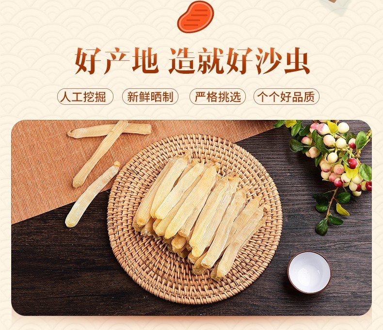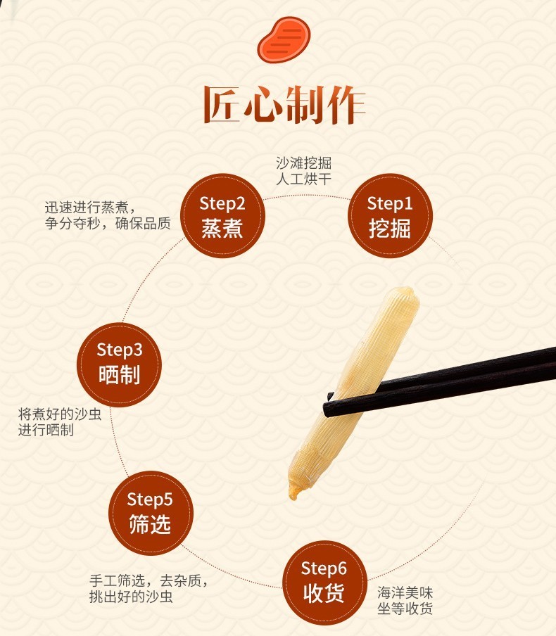 零拾令 精品淡干大号沙虫干50g约40-50条 沙肠子已去沙袋海鲜海产干货 大号沙虫干500g(50g*10袋)