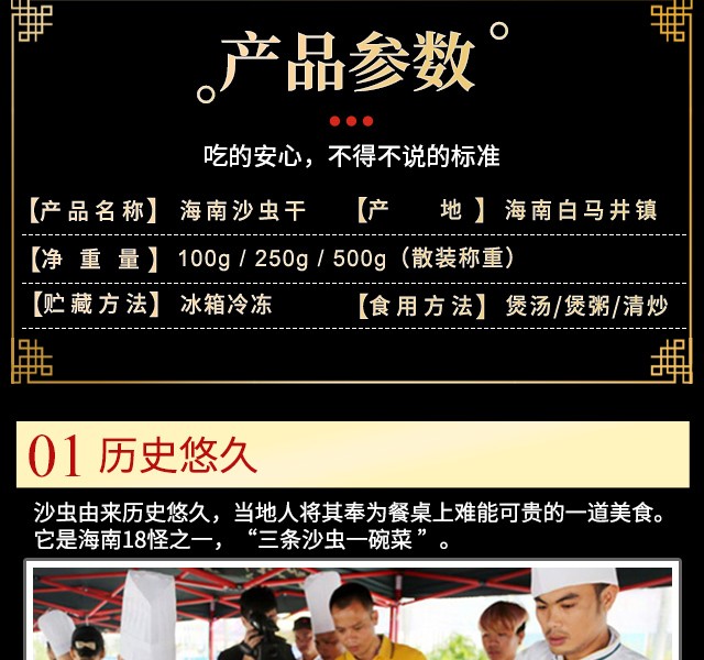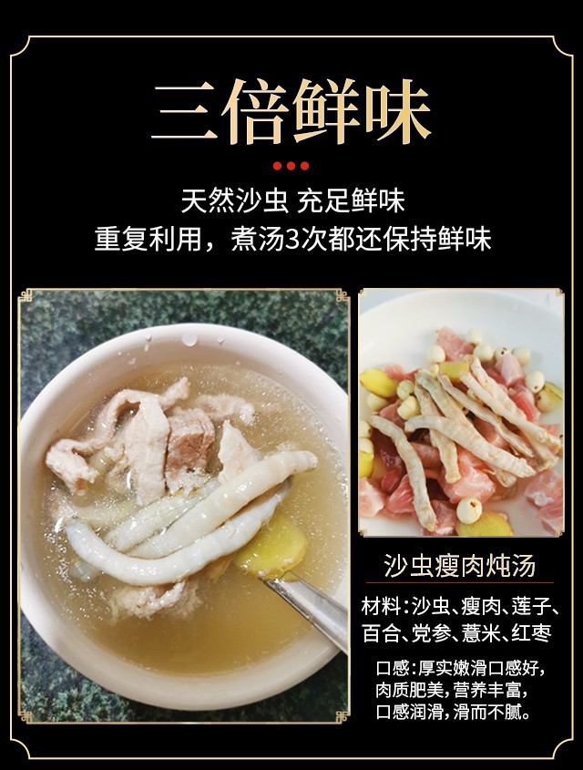 渔爷芝家 天然泥地老沙虫干货 老人小孩日常熬粥炖汤滋补海南岛珍贵厚肉金黄海沙虫 100g