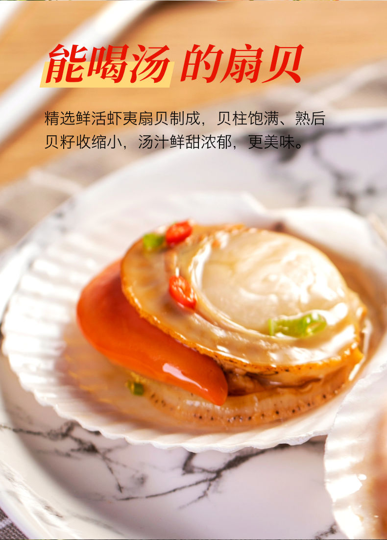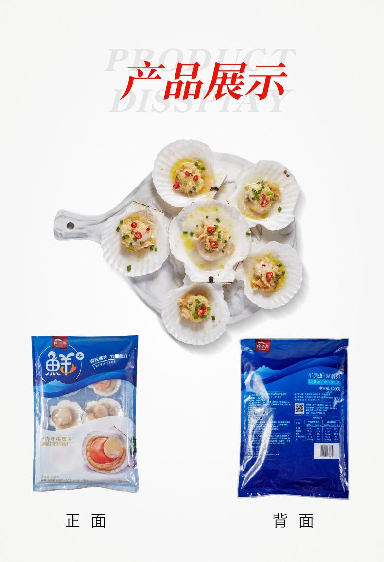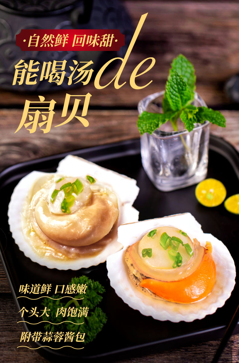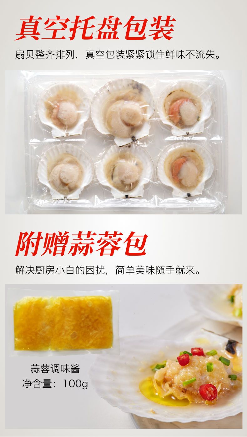 獐子岛 精选鲜汁半壳扇贝(超大号)520g 6只 蒜蓉调料包 虾夷扇贝 烧烤食材 海鲜 生鲜 健康轻食