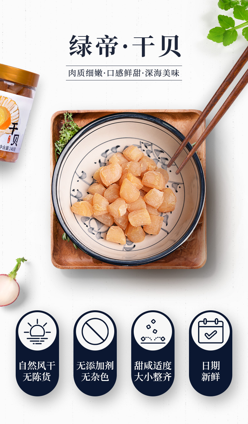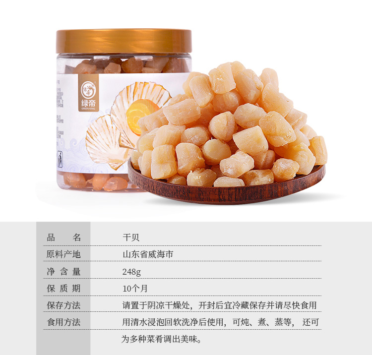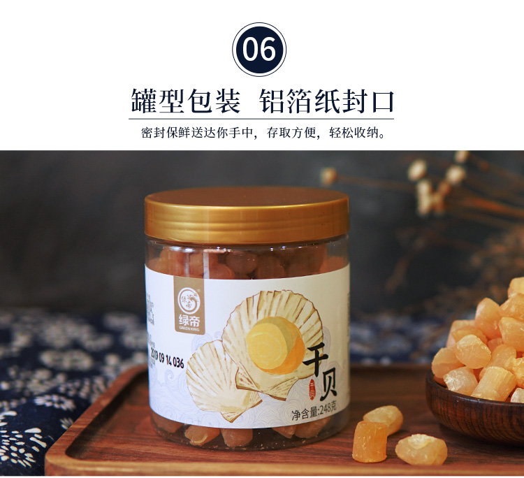 绿帝 海鲜干货 淡扇贝干瑶柱 海鲜特产 海产品 干贝248g