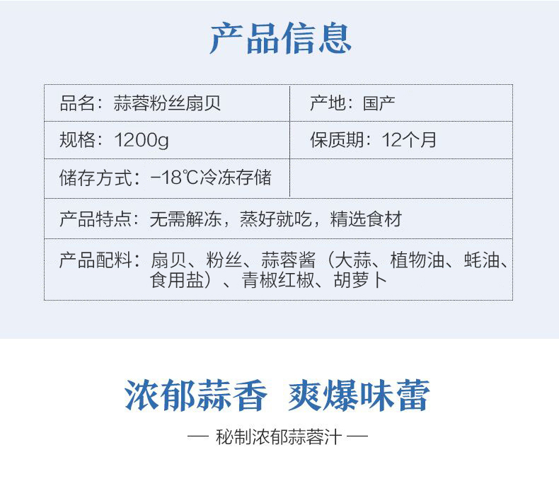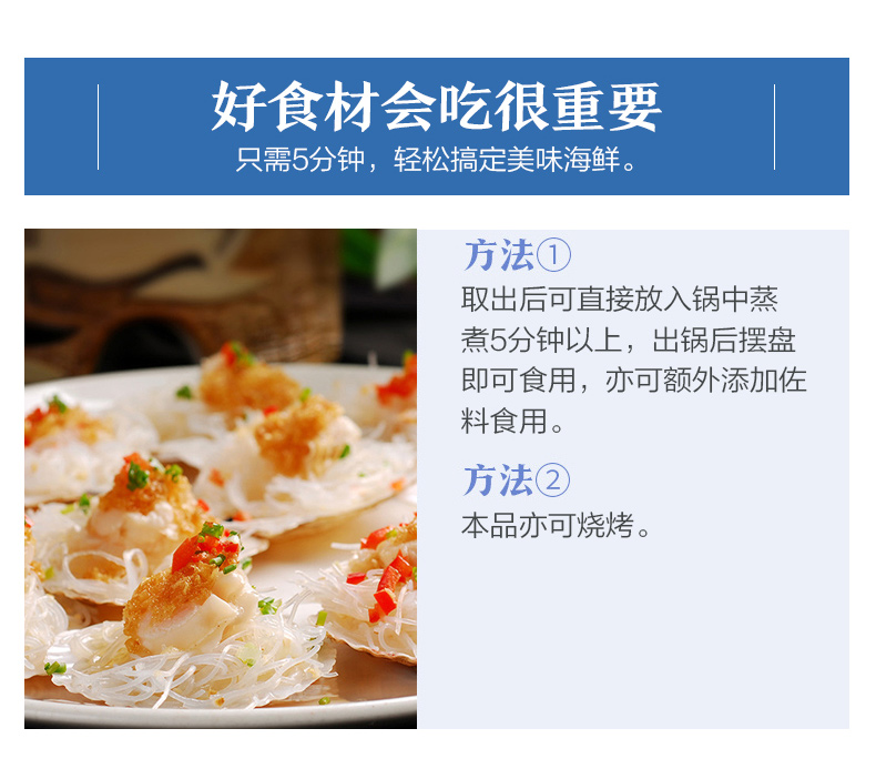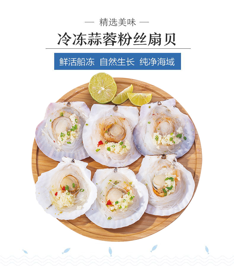 弹指鲜生【拍2件 减15】蒜蓉粉丝扇贝肉24只1200g 4小袋分装 烧烤食材 生鲜冷冻贝类