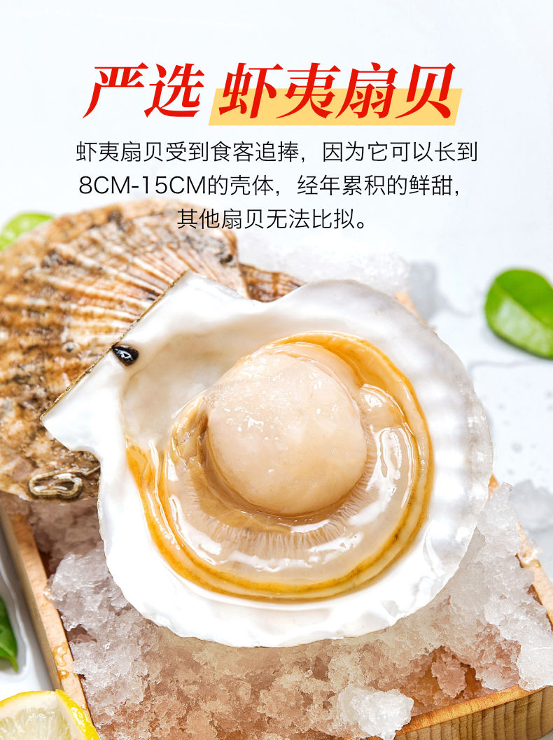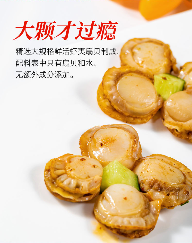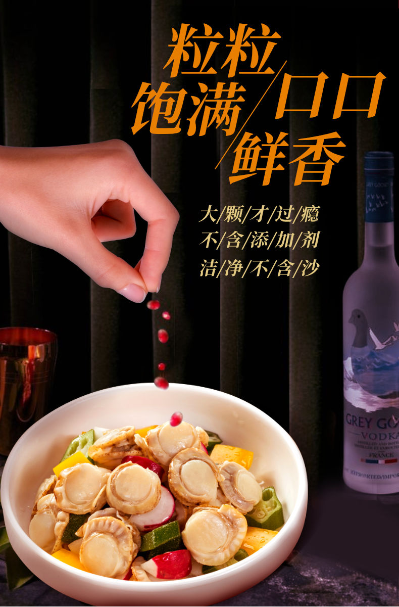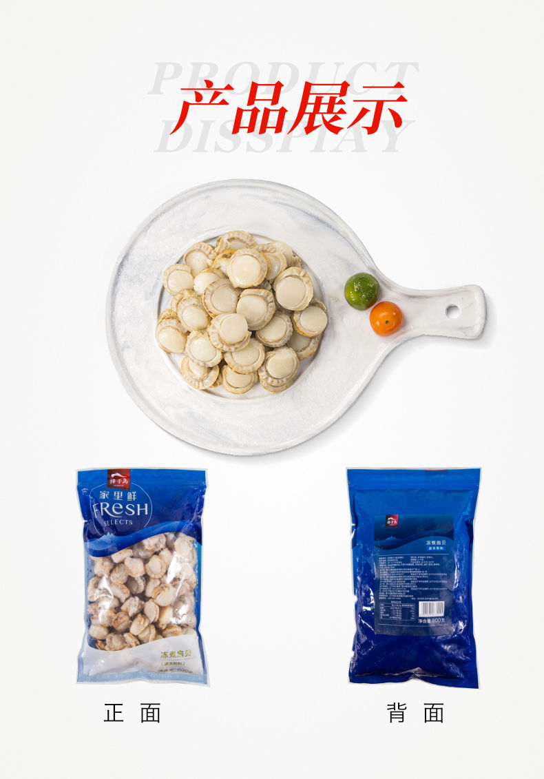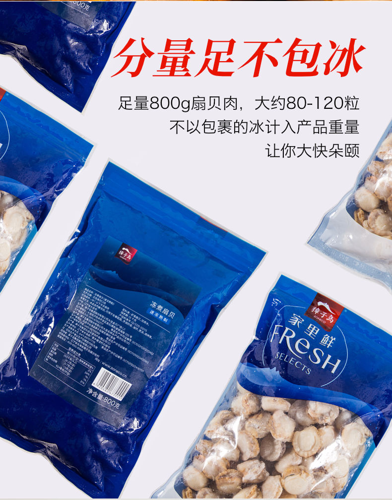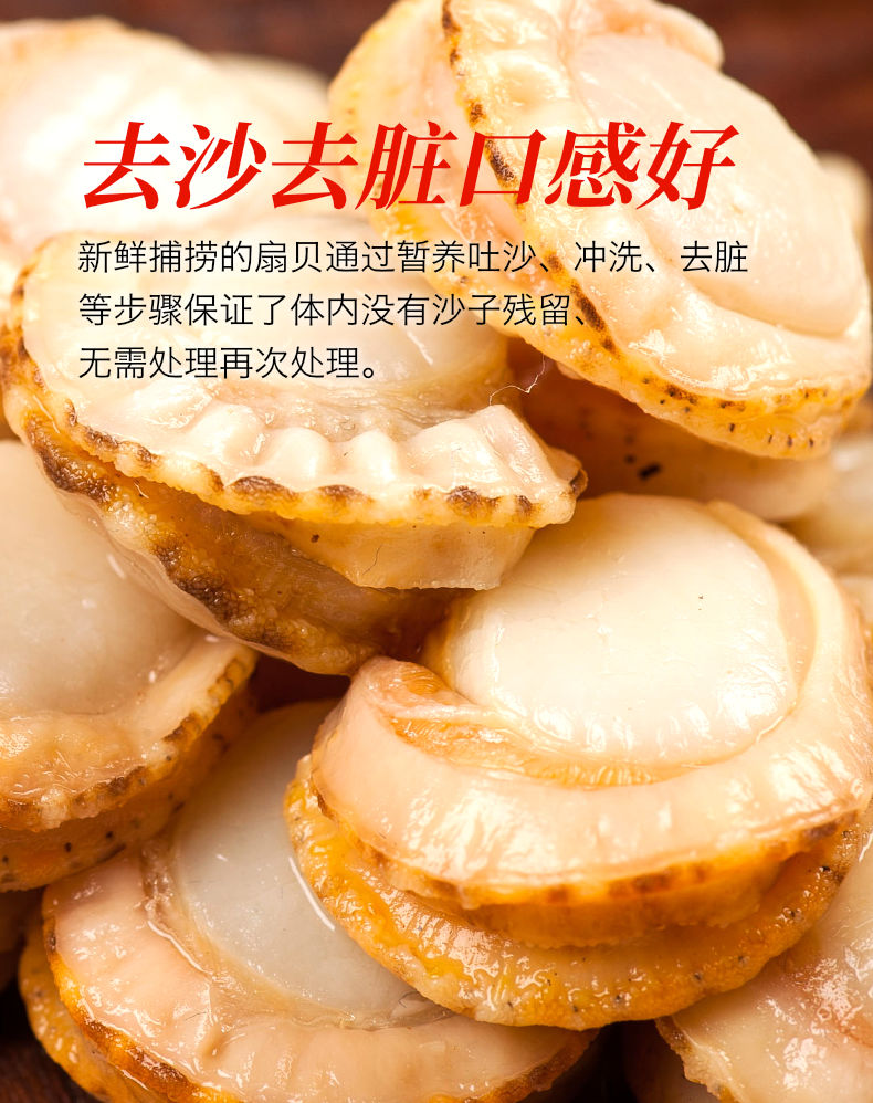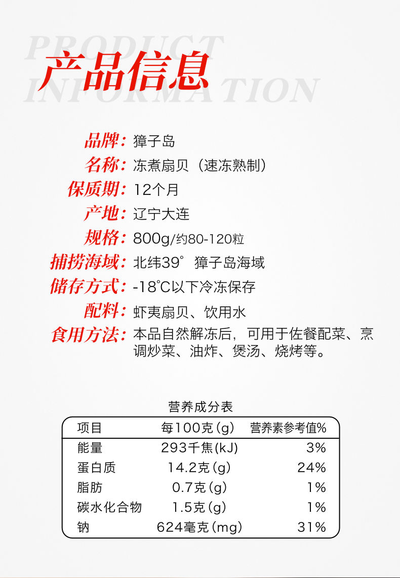 獐子岛 冷冻大号去脏去沙冻煮扇贝(虾夷扇贝)净重800g/袋 80-120粒 烧烤食材 海鲜 生鲜 健康轻食