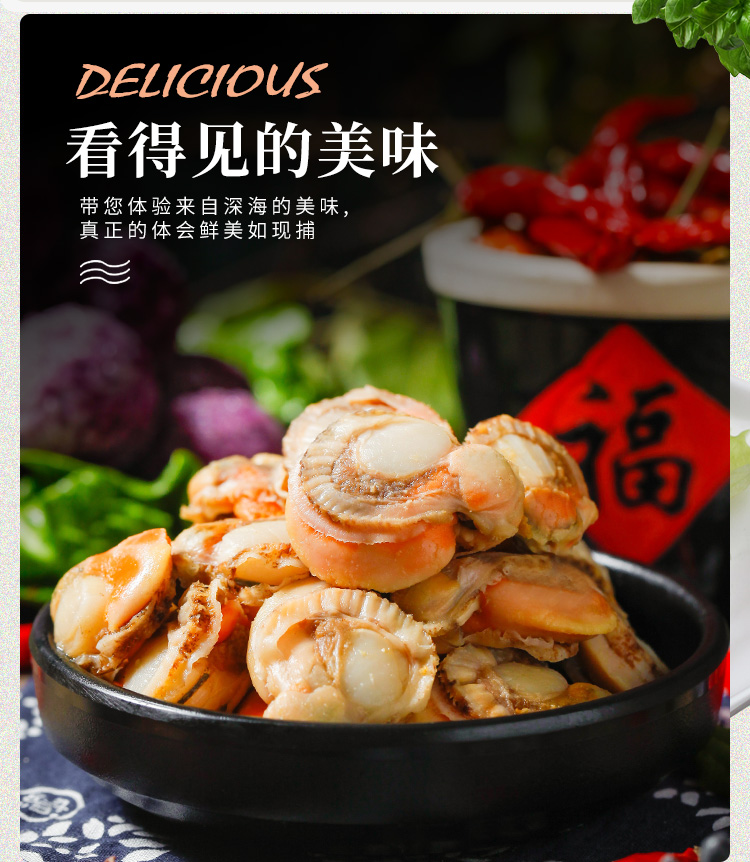 上麟记 国产冷冻特大号带黄去胃无沙扇贝肉500g 20-40粒袋装 粉丝扇贝原料 火锅烧烤食材 海鲜水产