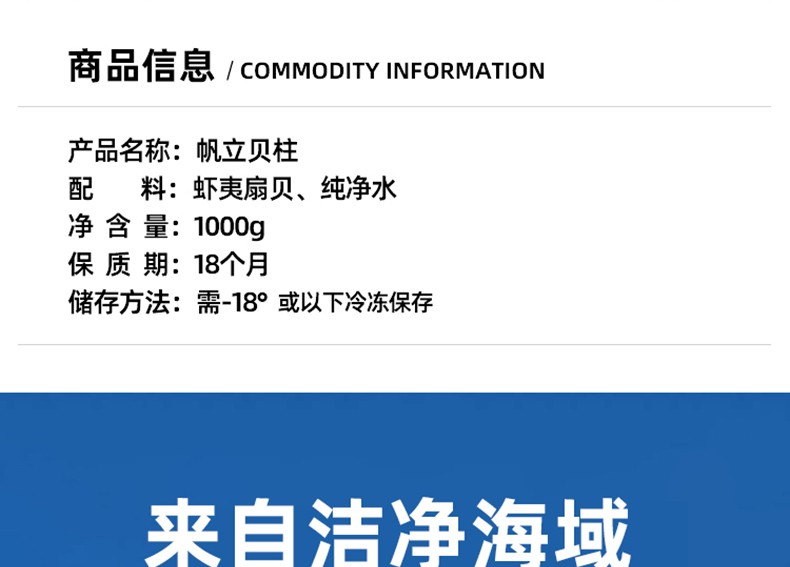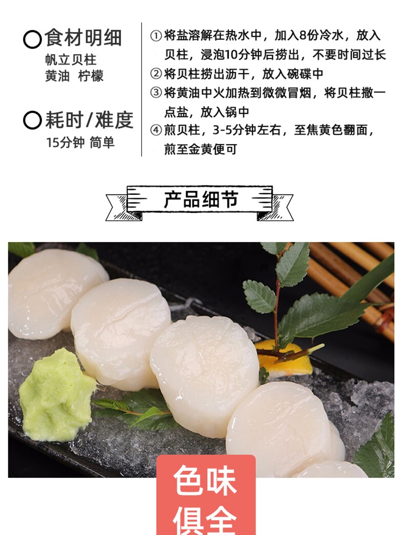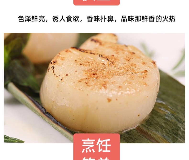 冰天冻地 冷冻帆立贝柱 1000g 盒装 瑶柱元贝带子肉虾夷扇贝 烧烤火锅食材 海鲜年货