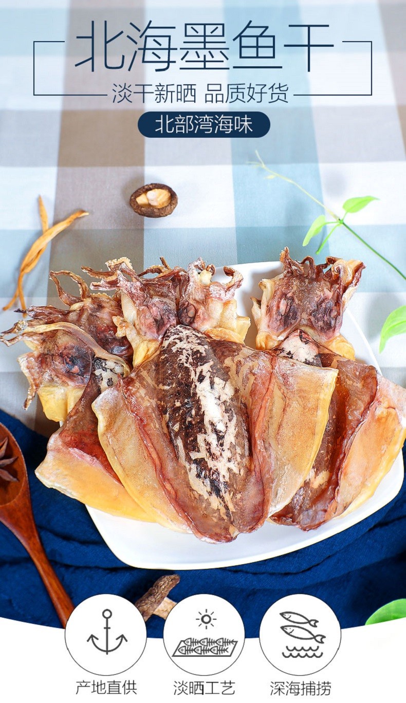 淡晒墨鱼干500g 海鲜海产干货乌贼目鱼海鱼干生鲜海产品煲汤炖汤 精品墨鱼约20-30只